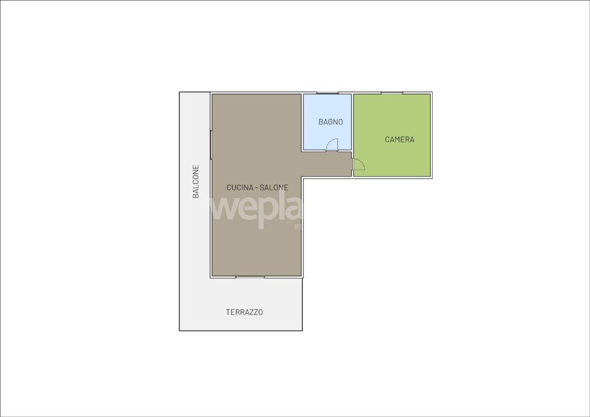 – 50 mq interni perfettamente distribuiti: zona living con cucina a vista, bagno e camera da letto.